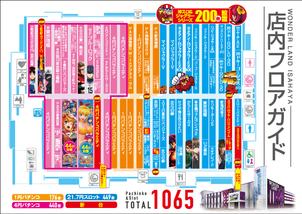- [1]パチ:175台 [4]パチ:441台 [1000円/46枚]スロ:450台