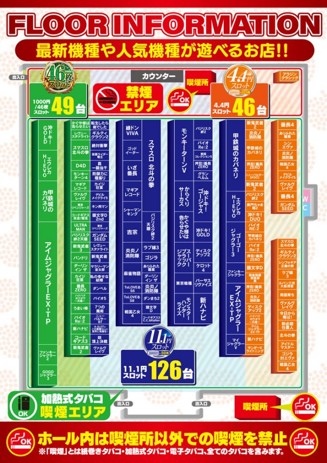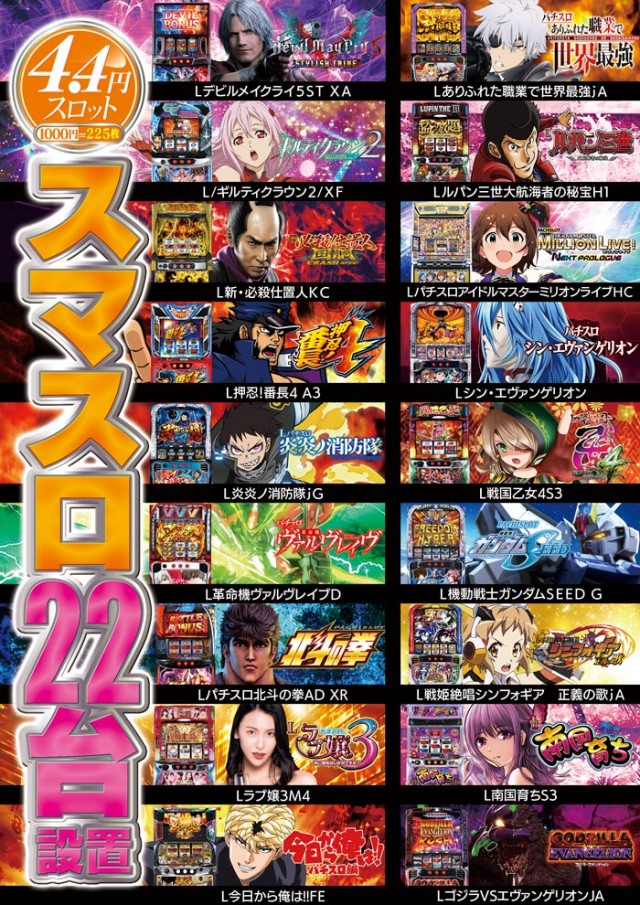 - 最新&人気機種が2倍遊べる10スロ!地域唯一の5倍遊べる充実の4スロ!