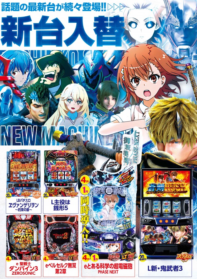 - パチンコ◆4円:96台◆1円:128台 スロット◆20円:210台◆5円:30台◆2円:30台
