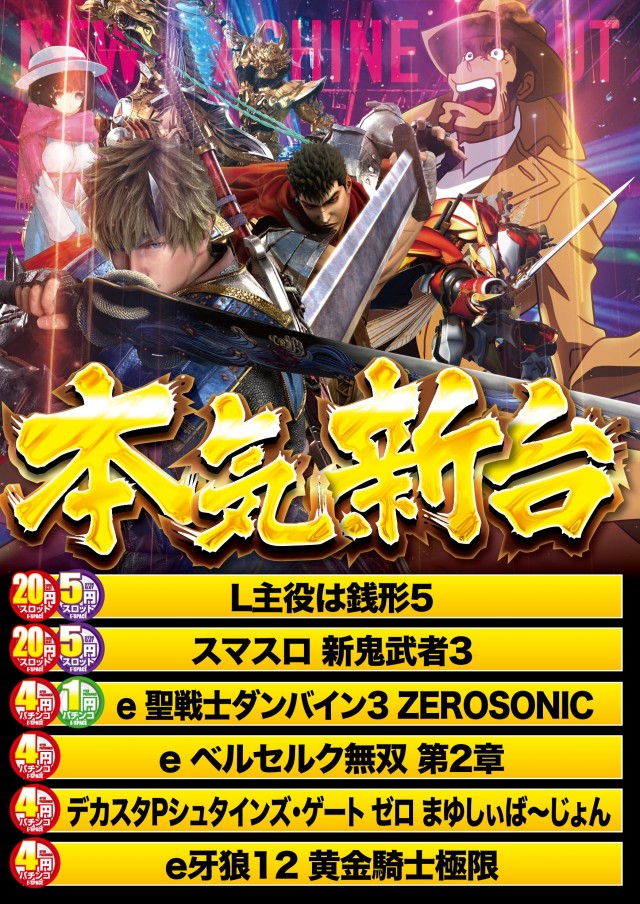- [4]パチ:64台 [1.12]パチ:64台 [0.56]パチ:32台 [21.74]スロ:181台 [メダル1枚2.24円貸]スロ:30台 [5.6]スロ:30台
