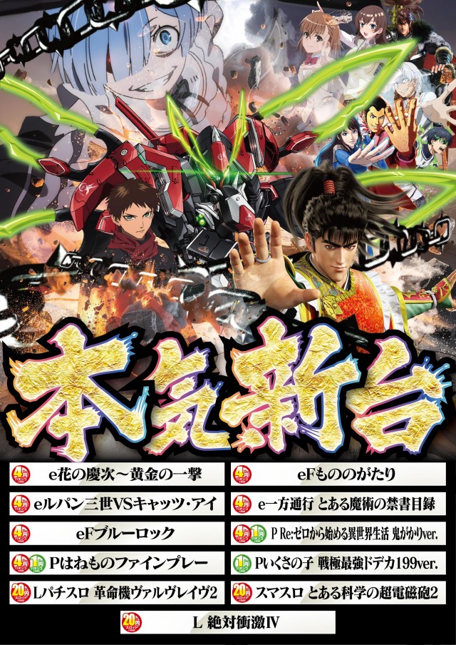 - 4パチ:108台 0.56パチ:36台 1.12パチ:108台 20スロ:307台