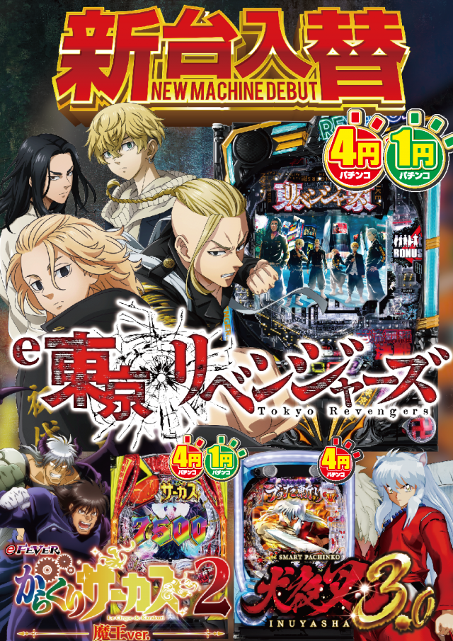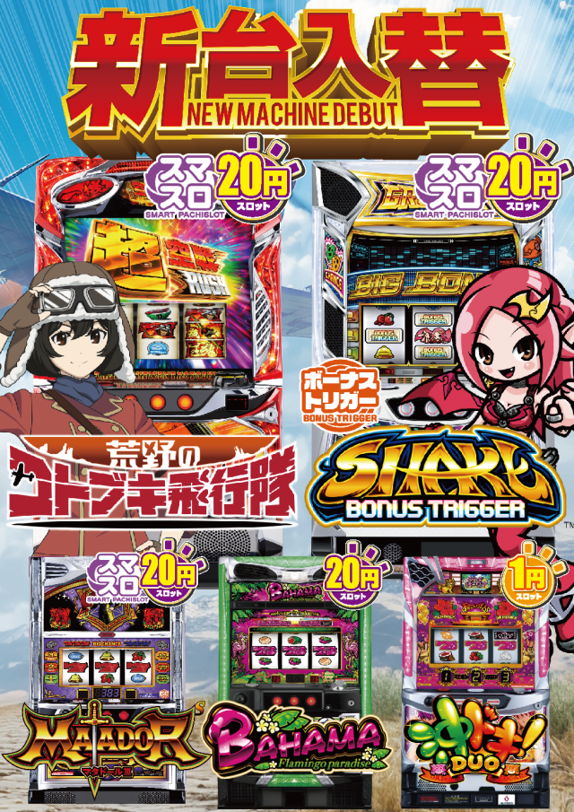 - [1]パチ:64台 [0.25]パチ:30台 [4]パチ:32台 [20]スロ:185台 [1.25]スロ:30台 [メダル1枚5.61円貸]スロ:25台