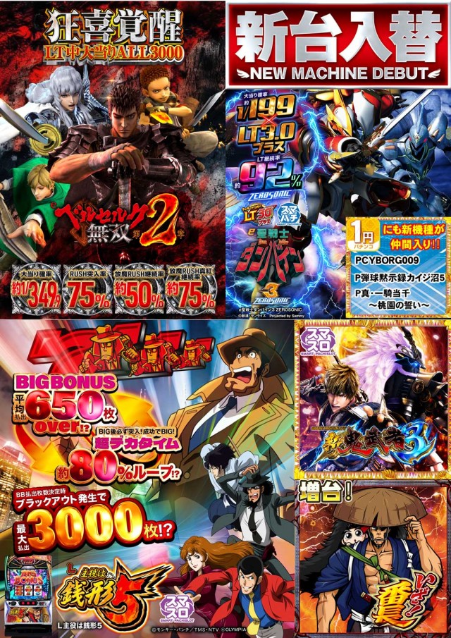 - [4 パチンコ] 102台 [1.12 パチンコ] 34台 [21.74 スロット] 209台