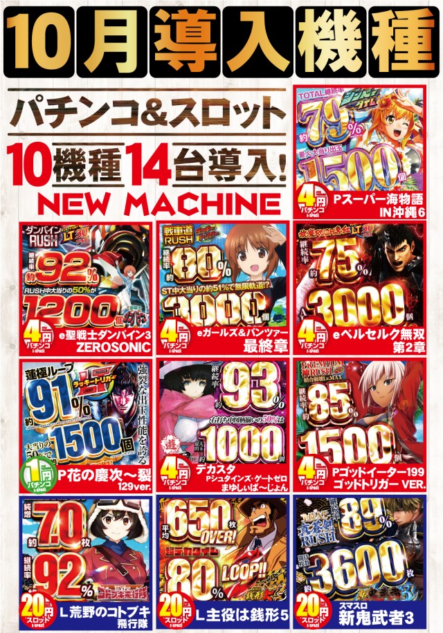 - -スマスロ&スマパチ地域最大- ○パチンコ/スロット全台≪各台計数機≫設置!! ○遊技台の随時アルコール消毒実施中!! ○飛沫感染防止ボード設置!! ○お客様満足度NO.1宣言!! 皆様が安心してご遊技頂けるよう 様々な対策に取り組んでいます。