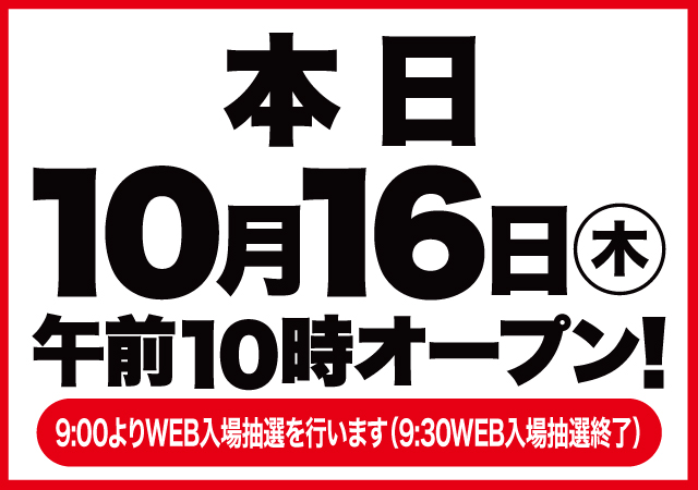 - ※オンライン抽選になります。※整列のお時間になってもお並びいただけない場合、最後尾での入場となります。※他のお客様のご迷惑となる行為はお断りいたします。