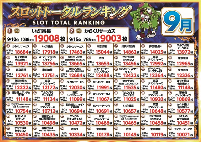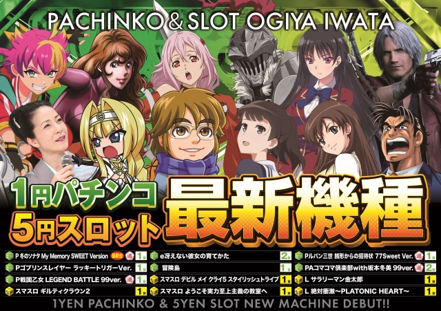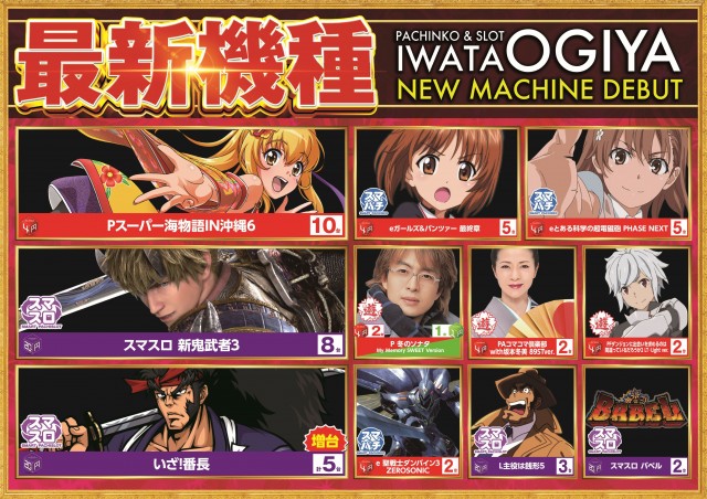 - [4]パチ:374台 [1]パチ:240台 [1000円/46枚]スロ:401台 [1000円/184枚]スロ:40台