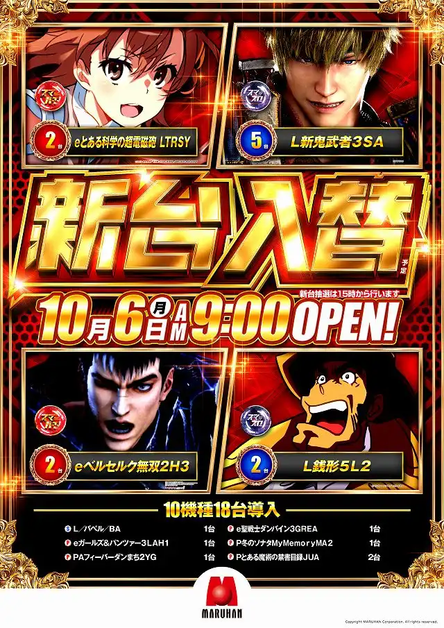 - [4]パチ:252台 [1.12]パチ:144台 [1000円/46枚]スロ:320台 [5.43]スロ:36台