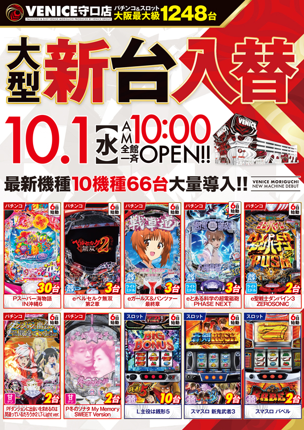 - 大阪最大級!! パチンコ・スロット設置総台数1248台! 圧倒的存在感!! -ワンランク上の壮大な空間-
