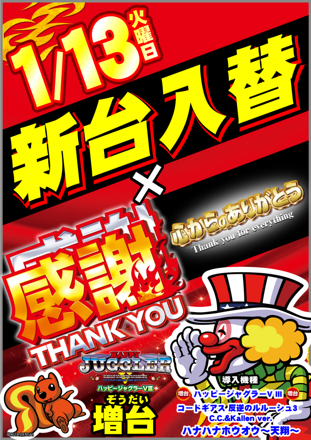 - [4]パチ:163台 [1]パチ:61台 [1000円/46枚]スロ:273台