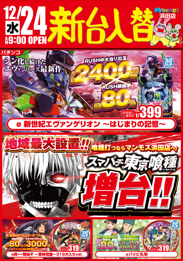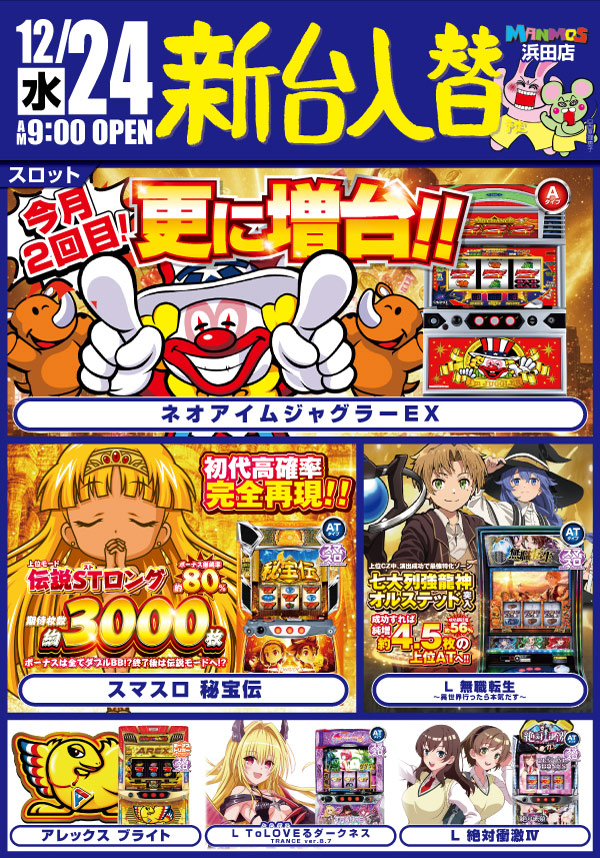 - [4]パチ:160台 [1.25]パチ:192台 [1000円/46枚]スロ:224台 [1,000円/160枚]スロ:20台