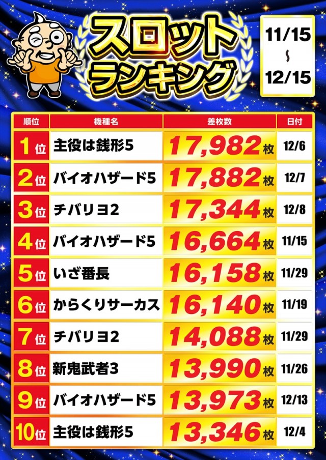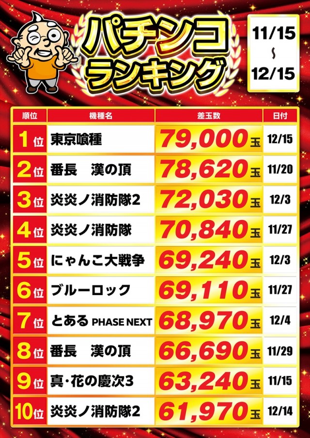 - [1]パチ:315台 [1000円/90枚]スロ:207台