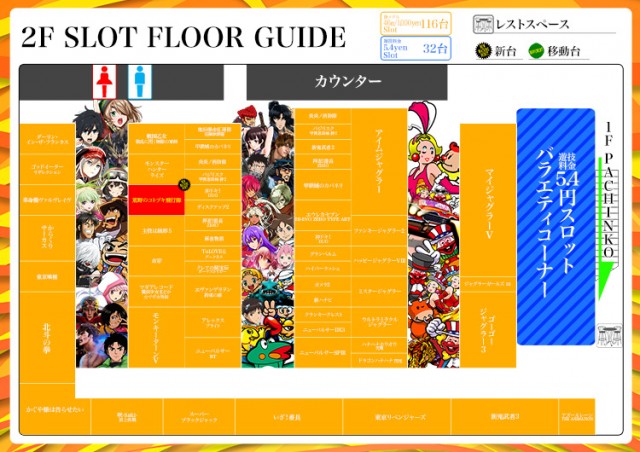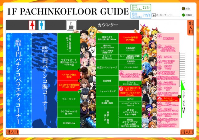 - [4]パチ:72台 [1]パチ:72台 [1000円/46枚]スロ:116台 [184枚/1000]スロ:32台