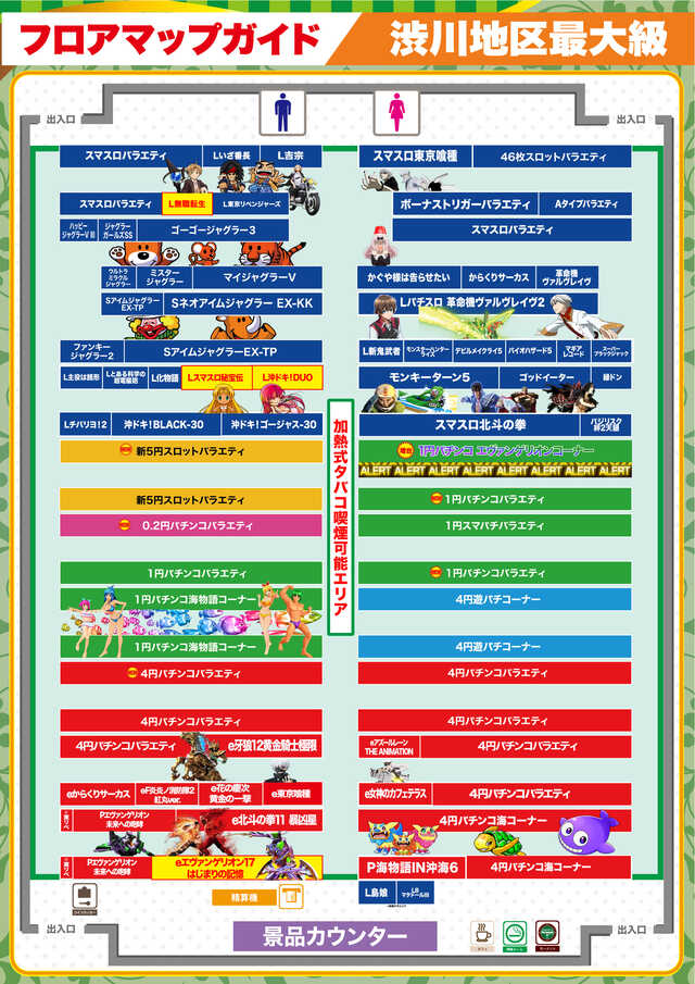 - [None]パチ:126台 [None]パチ:18台 [None]パチ:252台 [None]スロ:285台 [None]スロ:36台