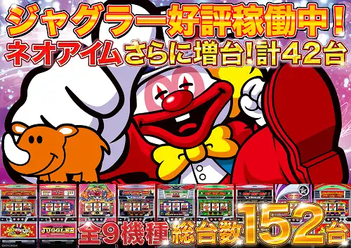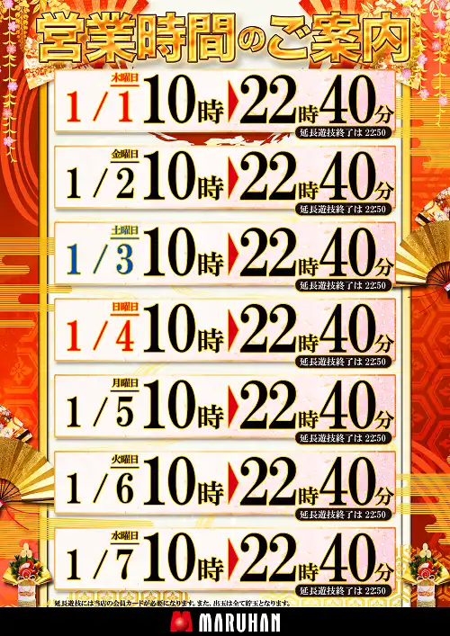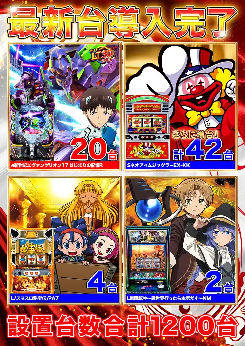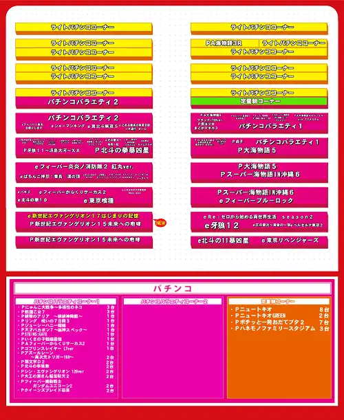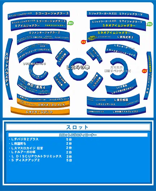 - パチンコ1000円/245玉 480台 ライトパチンコ500円/490玉 240台 スロット1000円/49枚 480台