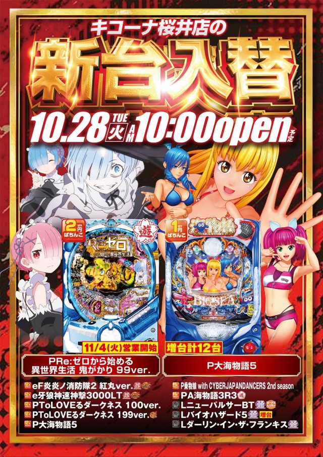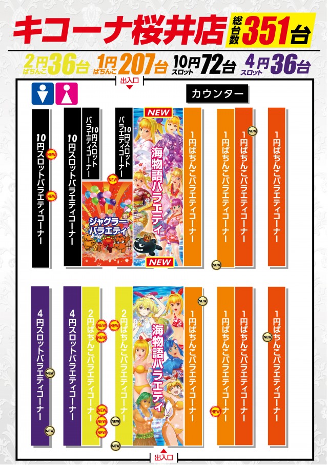 - [1]パチ:36台 [2]パチ:36台 [10]スロ:72台 [4]スロ:36台