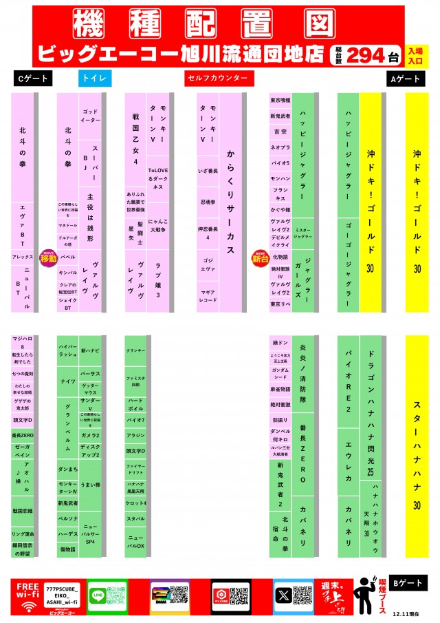 ビッグエーコー旭川流通団地店の設置機種