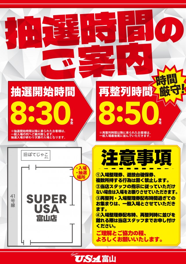 - 抽選時 8時30分より抽選開始 8時50分再整列
