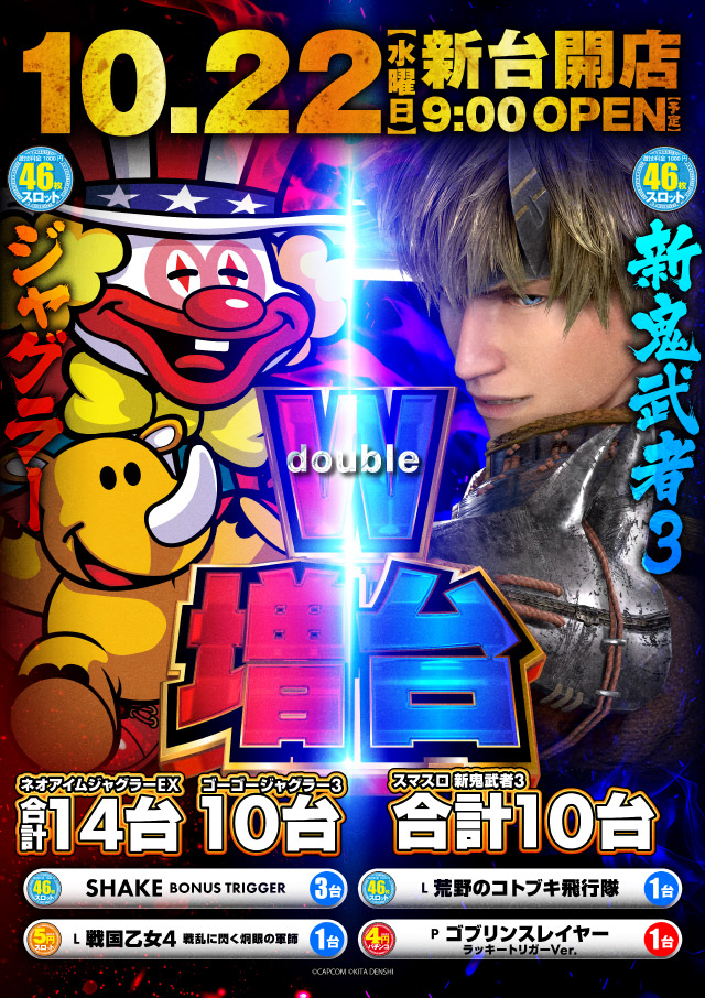 - 4円パチンコ:146台、1円パチンコ:119台 1000円46枚スロット:300台、5円スロット:12台
