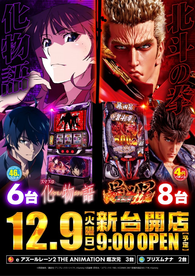 - 4円パチンコ:146台、1円パチンコ:119台 1000円46枚スロット:294台、5円スロット:18台