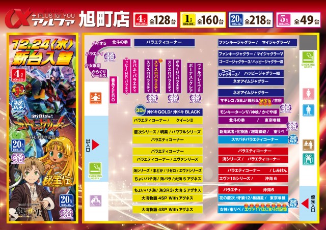 - [1000円/250玉]パチ:128台 [1000円/890玉]パチ:160台 [1000円/46枚]スロ:218台 [1000円/178枚]スロ:49台