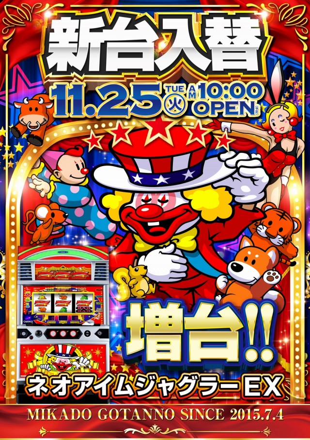 - [1000円/250玉]パチ:53台 [1000円/1780玉]パチ:32台 [1.124]パチ:94台 [1000円/46枚]スロ:135台 [1000円/178枚]スロ:24台 [1000円/446枚]スロ:12台