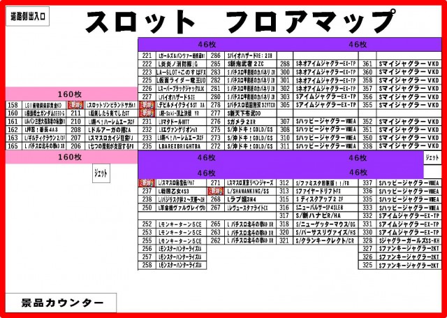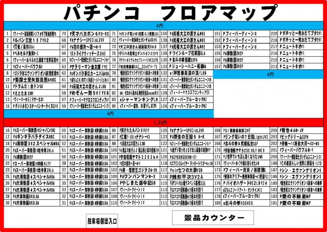 - [4]パチ:60台 [1.25]パチ:72台 [21.739]スロ:80台 [1,000円/160枚]スロ:12台