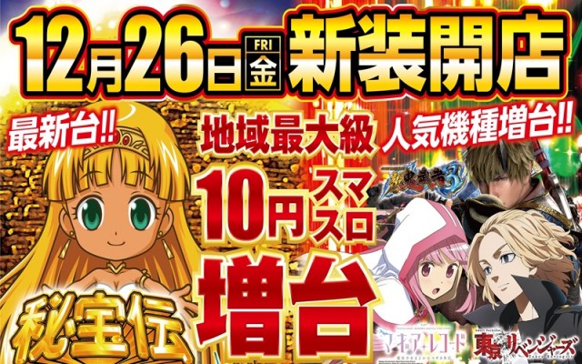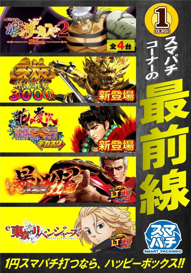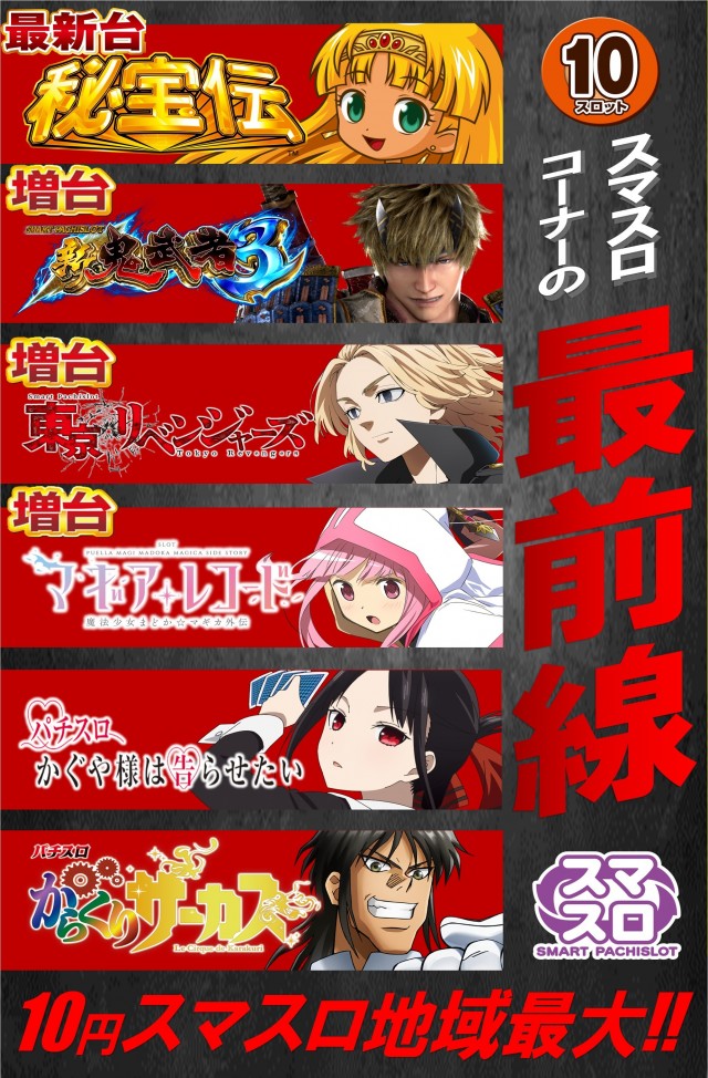- [パチ]1円:252台 0.25円:72台 計324台 [スロ]1000円/46枚:21台 1000/100枚:132台 1000/200枚:48台 1000/400枚:42台 計263台