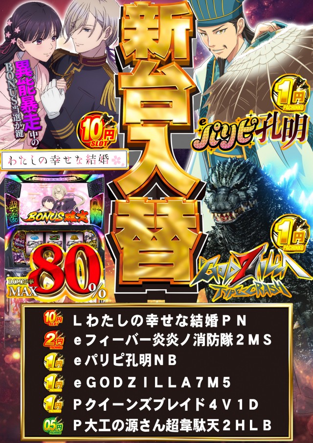 - [0.56]パチ:32台 [1.12]パチ:64台 [2.24]パチ:32台 [11.24]スロ:180台 [5.62]スロ:45台 [2.24]スロ:15台