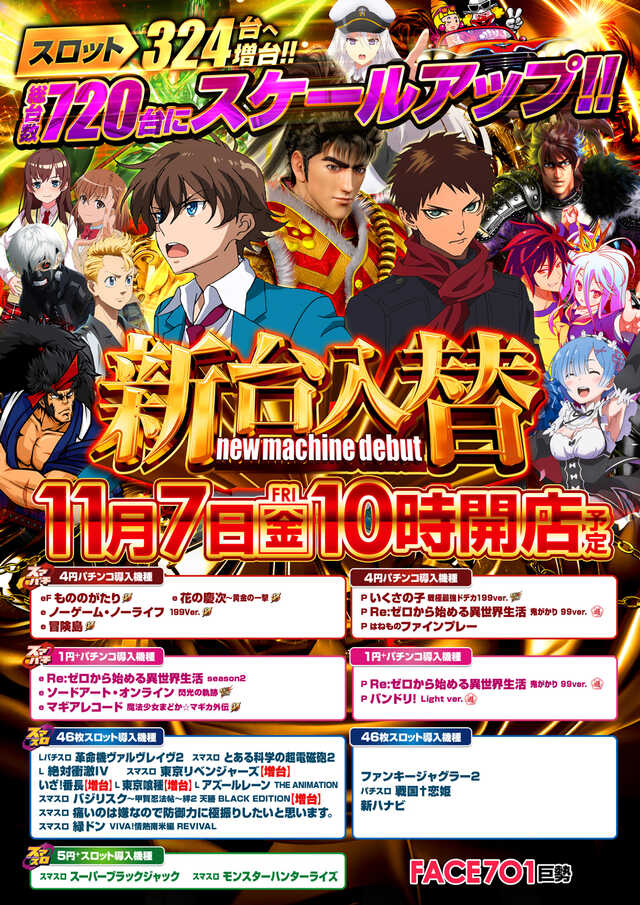 フェイス701巨勢の設置機種