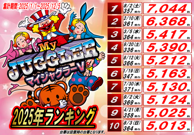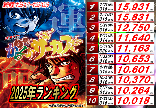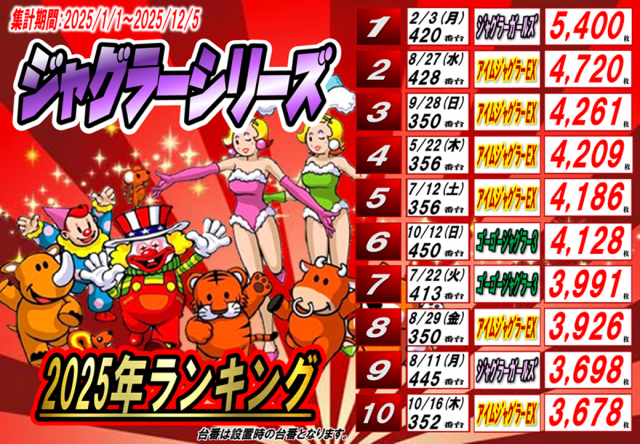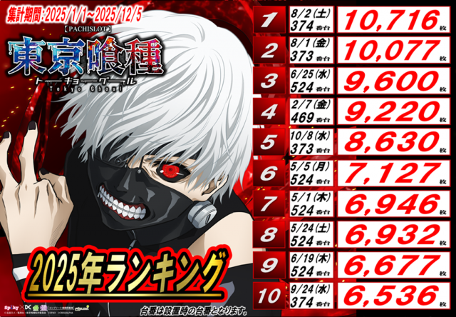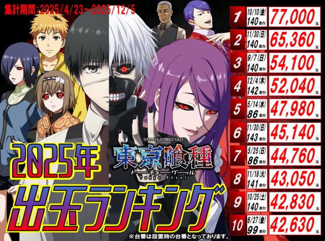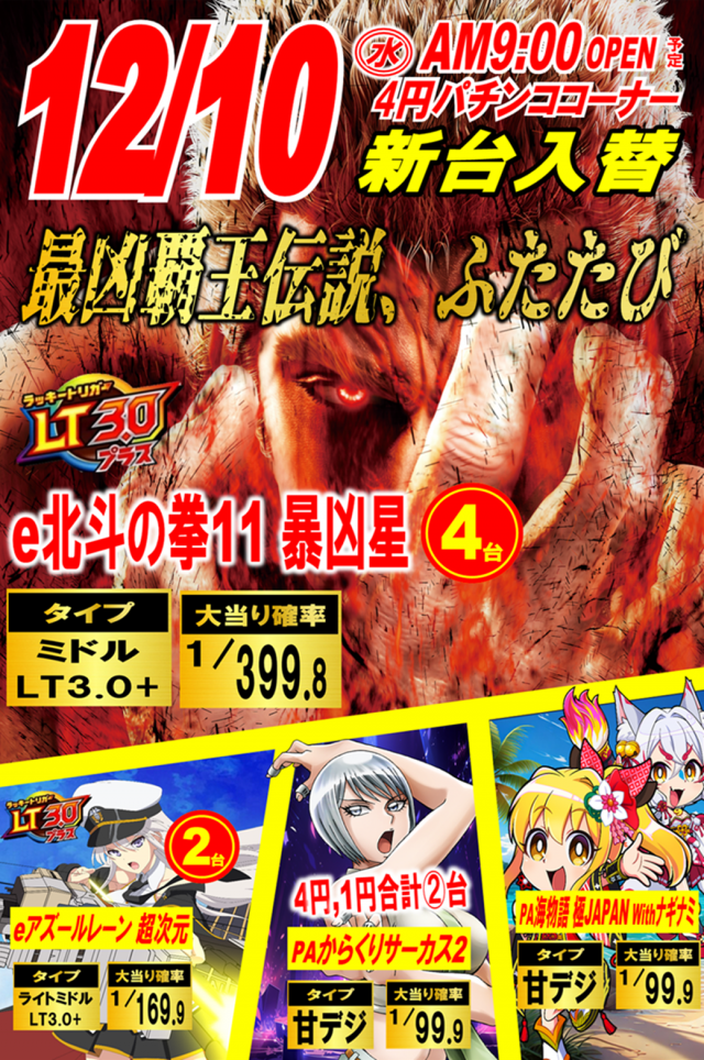 - 全館新紙幣対応済み‼ 4円パチンコ 156台! 1,00円/91玉貸パチンコ 156台! 1,000円/46枚貸スロット 202台! 5円スロット 32台! 総台数 546台! ☆最新台・人気機種勢揃い☆ お好きなレートで楽しめる♪ 皆様のご来店をスタッフ一同 心よりお待ち致しております!