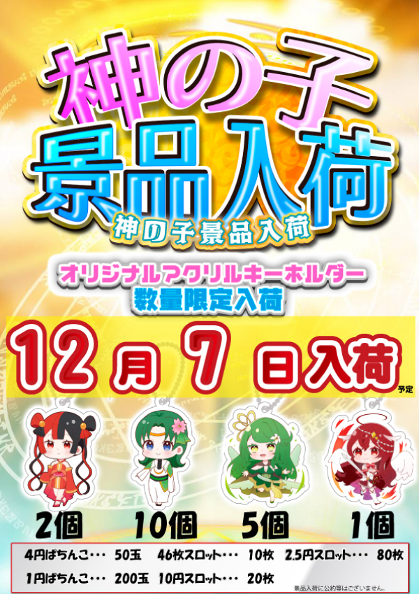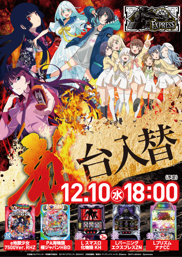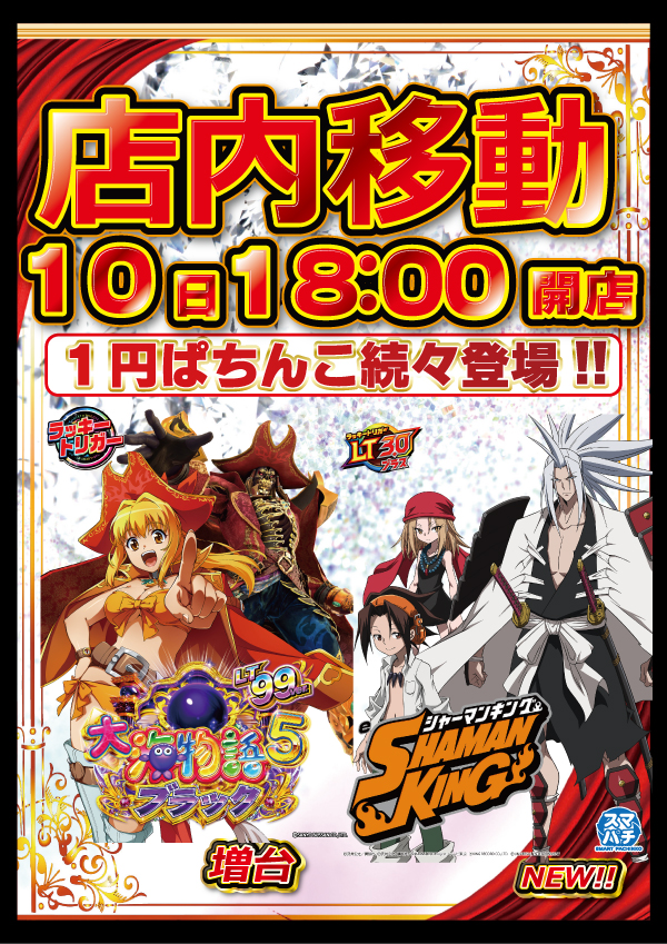 - [パチ] 4円:263台 1円:187台 計450台 [スロ] 1000円/46枚:337台 10円:10台 1000円/400枚:34台 計381台