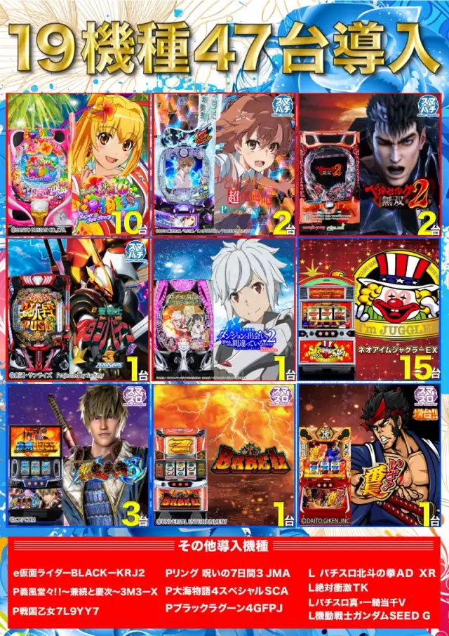 - [4]パチ:200台 [1]パチ:120台 [21.27]スロ:200台 [1000円/188枚]スロ:40台