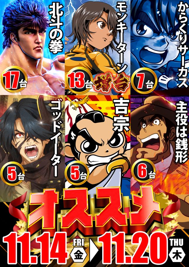 - 1000円228玉パチンコ 126台 1000円890玉パチンコ 14台 1000円46枚スロット 214台