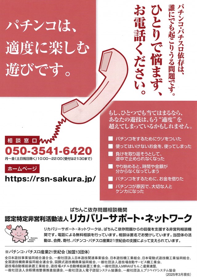 - 台間ボード・空気清浄機 全台完備! 安心してご遊技いただけます!
