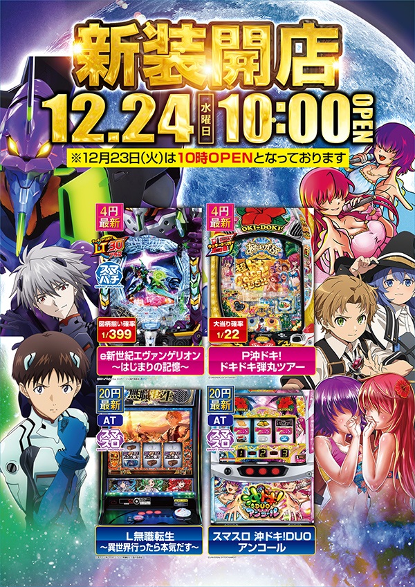 - 新台入替日のみ14時開店。日程は店内告知・HP等でご確認下さい。