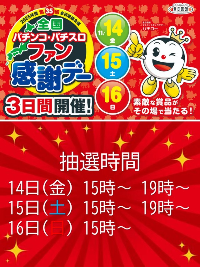 - 新台入替、又は混雑時には9時45分より抽選入場