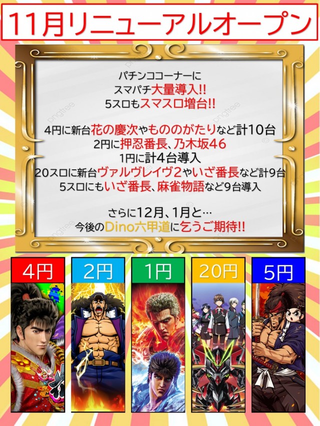 - [4]パチ:50台 [2]パチ:14台 [1]パチ:28台 [20]スロ:70台 [5]スロ:28台
