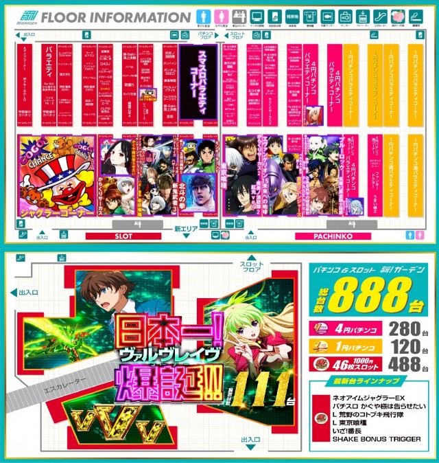 - [パチ] 4円:280台 1円:120台 計400台 [スロ] 1000円/46枚:488台 計488台