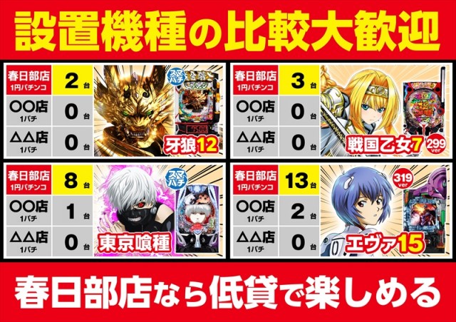 - [1]パチ:321台 [1000円/90枚]スロ:229台