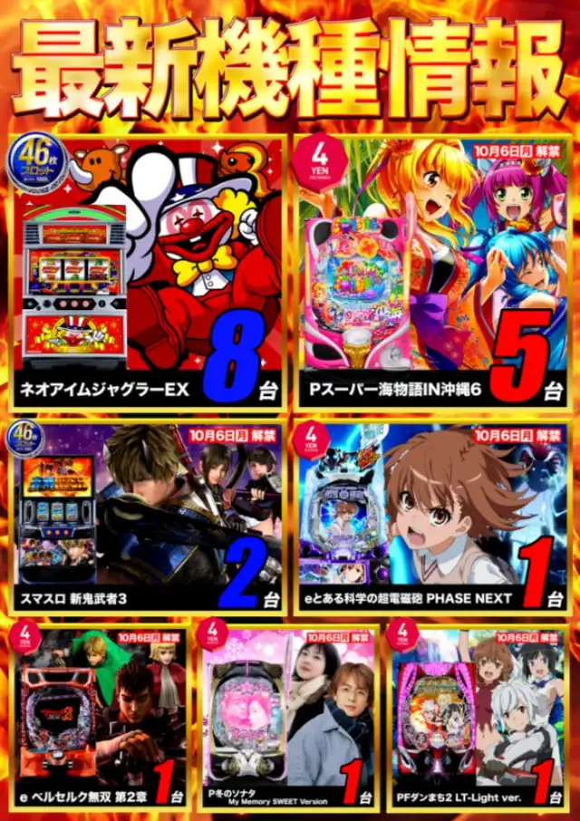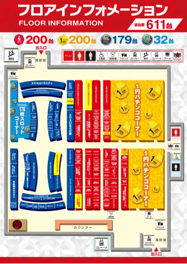 - [4]パチ:200台 [1]パチ:200台 [1000円/46枚]スロ:179台 [1000円/178枚]スロ:32台