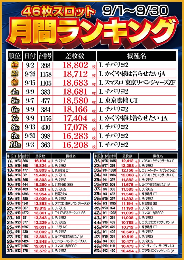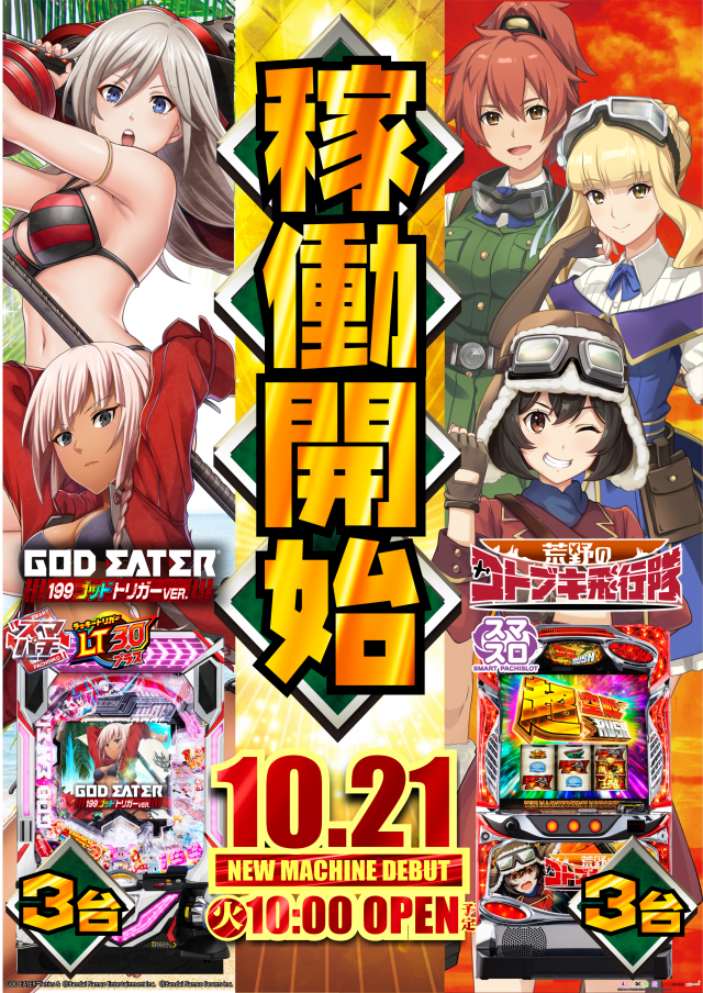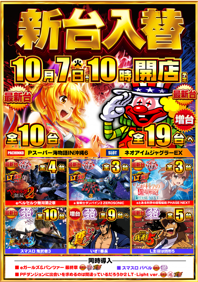 - [4]パチ:360台 [1]パチ:243台 [1000円/46枚]スロ:684台 [1,000円/160枚]スロ:80台