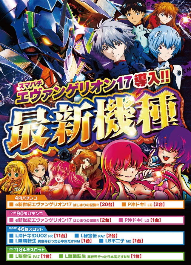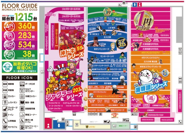 - [4]パチ:360台 [1.111]パチ:283台 [1000円/46枚]スロ:534台 [1000円/184枚]スロ:38台