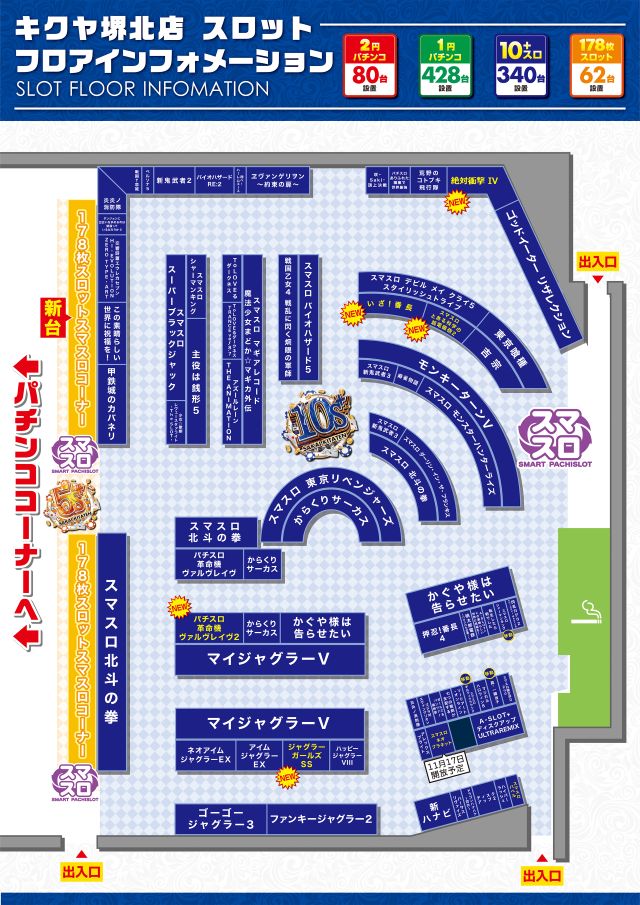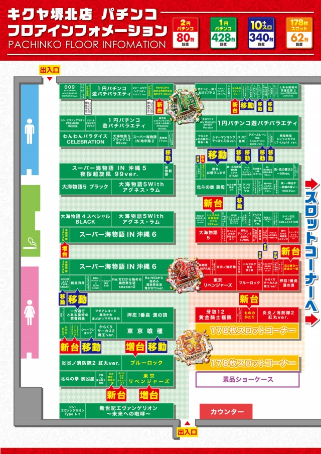 - [100玉/200]パチ:80台 [200玉/200]パチ:426台 [1000円/178枚]スロ:62台 [1000円/89枚]スロ:338台