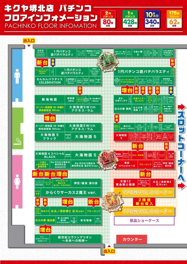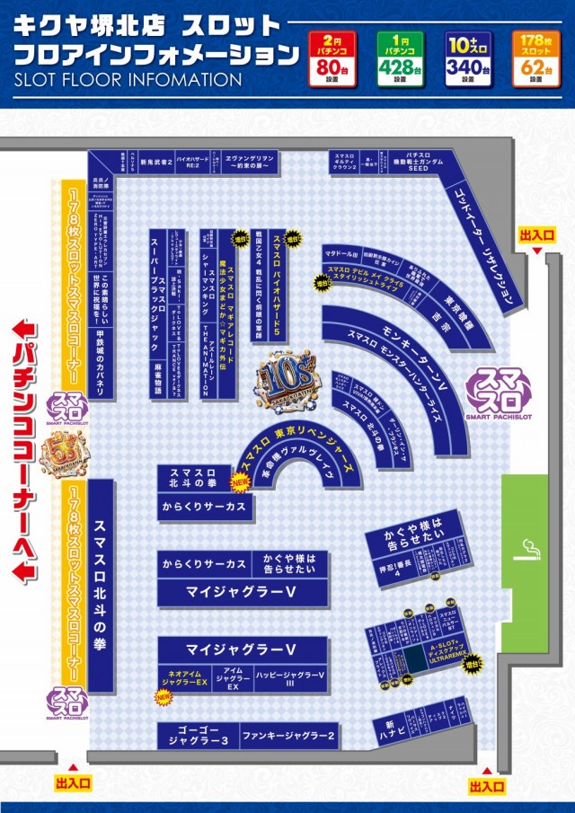 - [100玉/200]パチ:80台 [200玉/200]パチ:428台 [1000円/178枚]スロ:62台 [1000円/89枚]スロ:340台