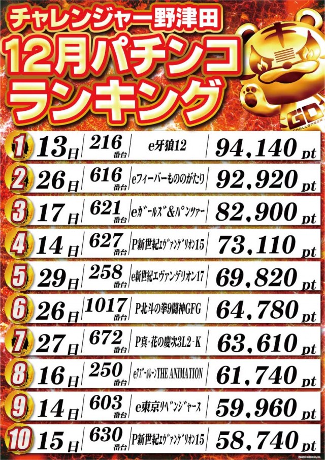 チャレンジャー町田野津田の設置機種