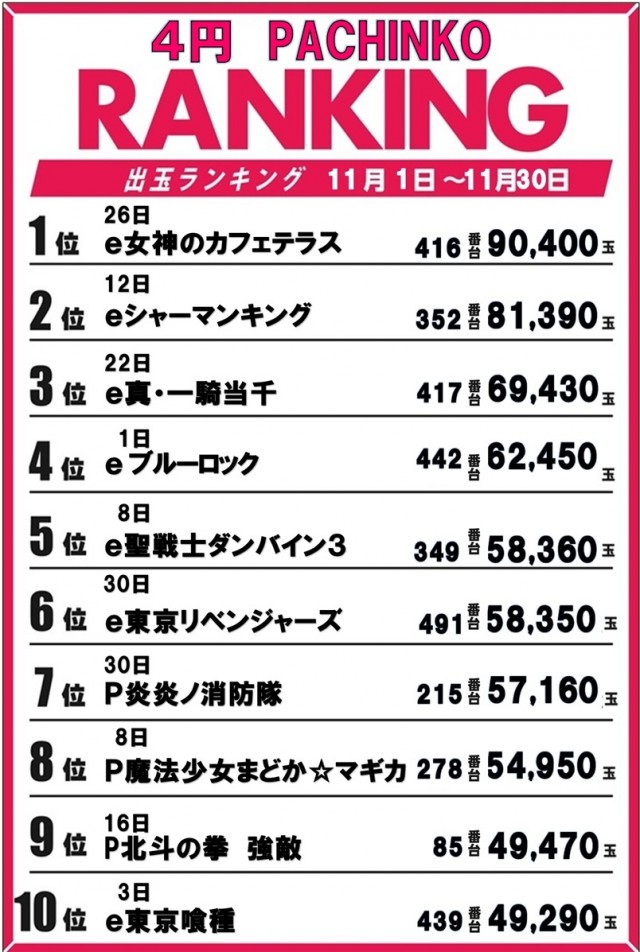 - 【4パチ】216台/【1パチ】288台/【0.5パチ】36台/【1000円/47枚スロ】238台/【6スロ】80台/【2スロ】40台