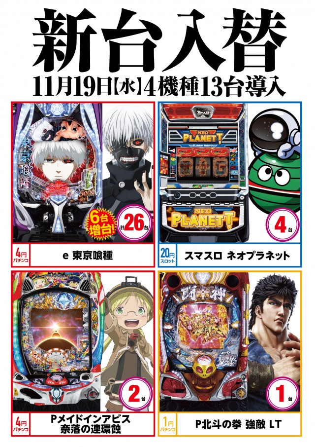 - 年中無休(※新台入替前日はお休みします)