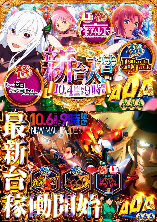 - [1]パチ:156台 [4]パチ:106台 [21.739]スロ:167台 [1000円/180枚]スロ:18台