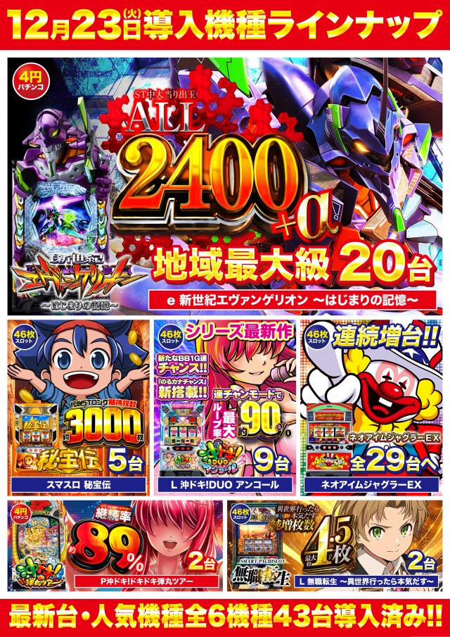 - 【パチ】4円:320台 1円:200台 計520台 【スロ】1000円/46枚:420台 1000円/182枚:60台 計480台