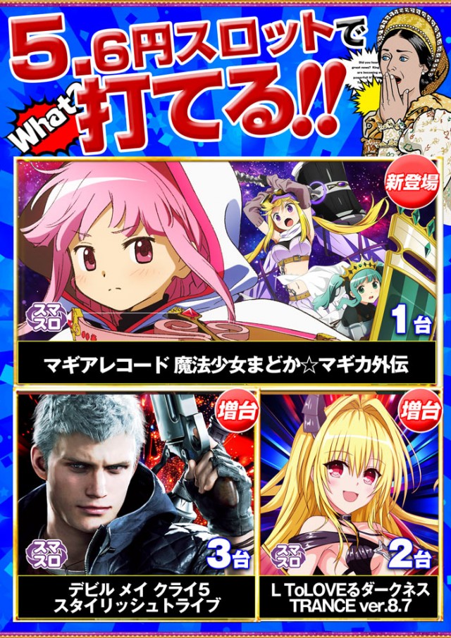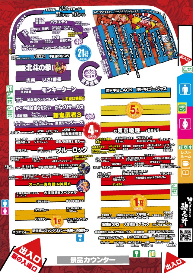 - 4円パチンコ:320台 1.12円パチンコ:214台 21.74円スロット:420台 5.6円スロット:80台